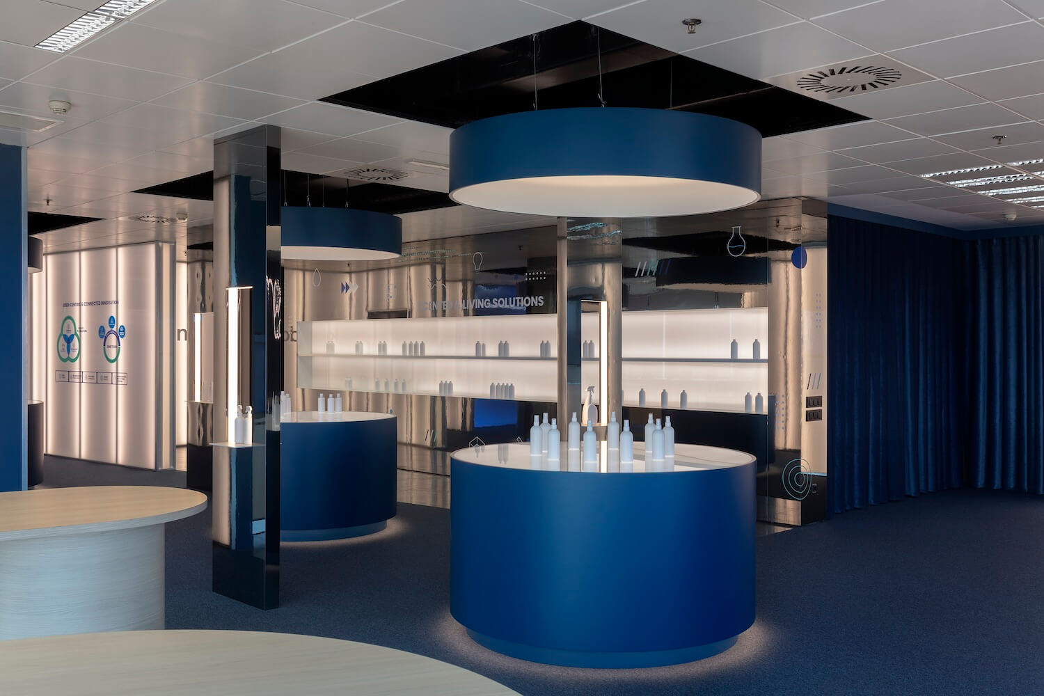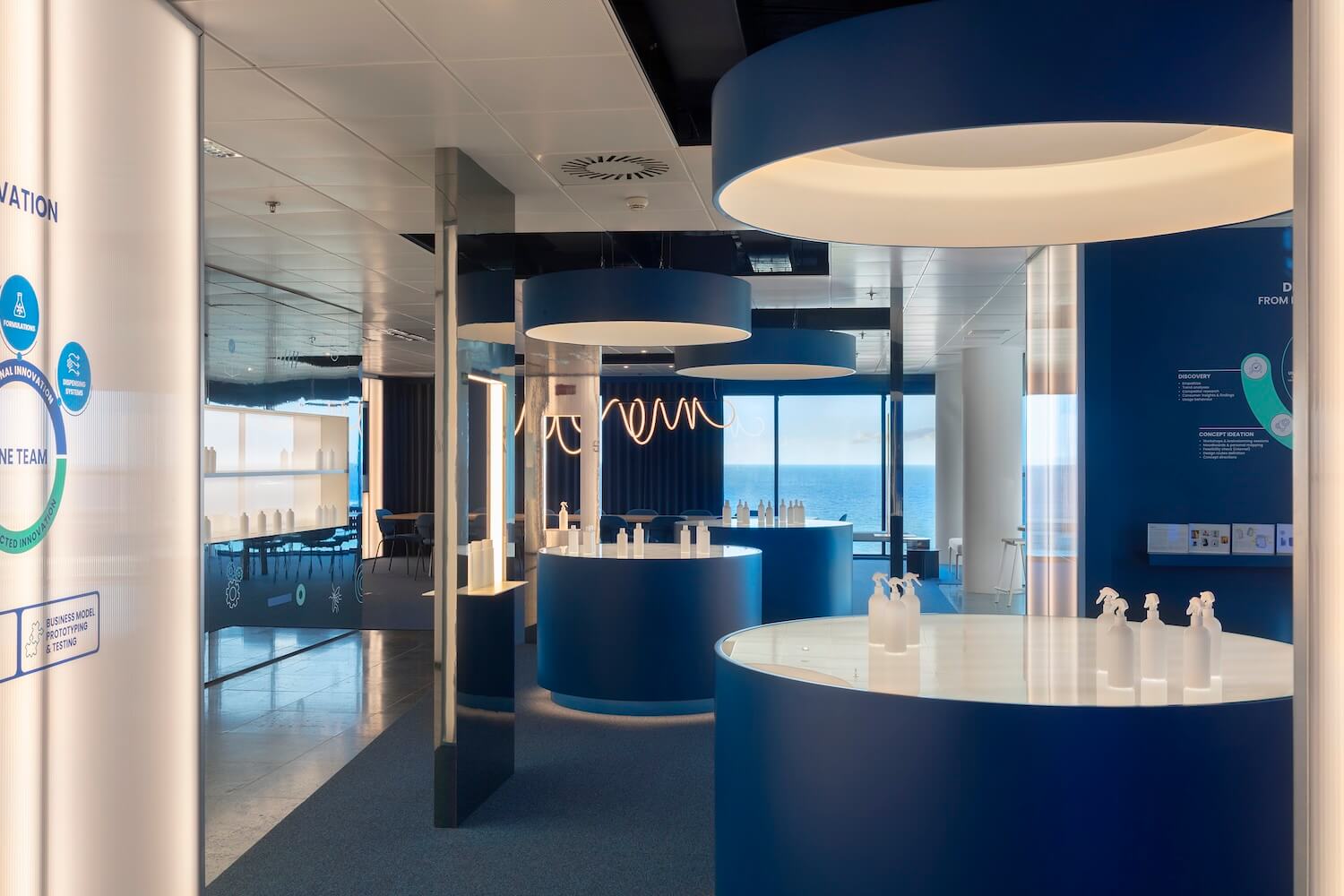 Un ambiente que transmita innovación y unas privilegiadas vistas del litoral barcelonés han sido los puntos de partida para el diseño de este showroom en Diagonal Mar. Situado en uno de los edificios corporativos de la zona y compartiendo planta con las oficinas que la marca tiene en Barcelona, se ha optado por crear un espacio diáfano y polivalente.